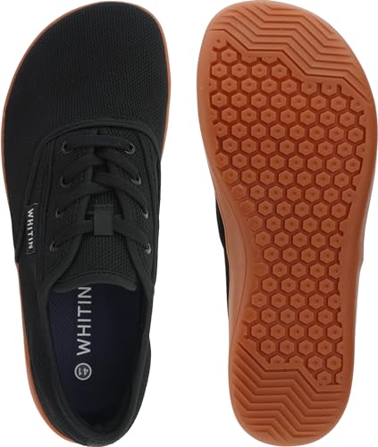 HOT ! WHITIN Men's Wide Knit Barefoot Shoes Zero Drop Sole Minimalist Width Toe Box Size 10 10W Minimus Training Weightlifting Tenis Sneaker Black Gum 44