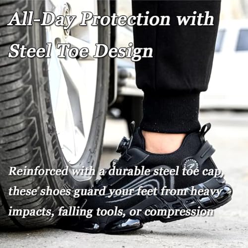 • 【All-Day Protection with Steel Toe Design】 Reinforced with a durable steel toe cap, these shoes guard your feet from heavy impacts, falling tools, or compression. Designed for demanding work environments while maintaining a lightweight, athletic feel
