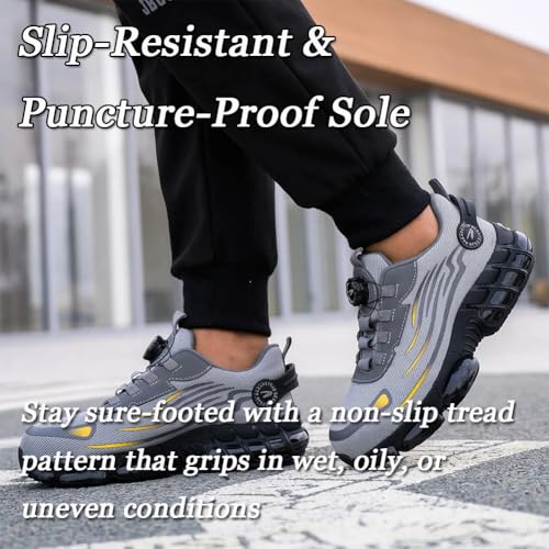 • 【Slip-Resistant & Puncture-Proof Sole】 Stay sure-footed with a non-slip tread pattern that grips in wet, oily, or uneven conditions. The puncture-resistant midsole adds extra protection against nails, glass, and sharp debris