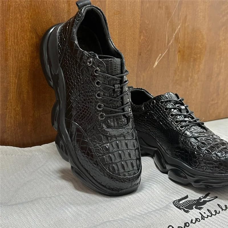 More information about Authentic Real Crocodile Skin Men's Black Cushioned Sneakers Genuine Exotic Alligator Leather Male Soft Lace-up Walking Shoes