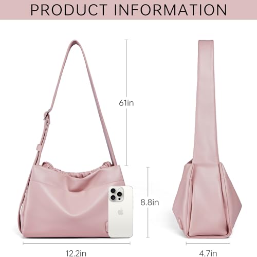LAFESTIN PU Leather Shoulder Bag For Women, Stylish Women's Shoulder Handbags with Adjustable Strap, Drawstring Closure, Inner Zipper Pocket, Peach 5