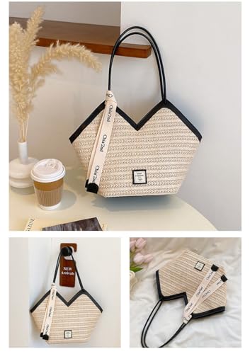 More information about Women Straw Shoulder Bag Beach Tote Bag Handmade Woven Shoulder Bag Large Beach Handbag