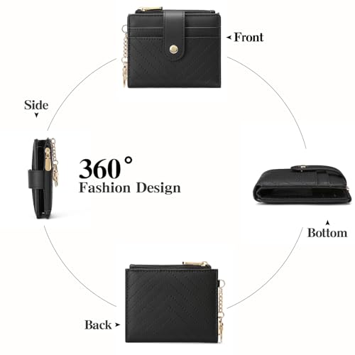 • Ultra-thin Design Wallet: Small card holder for women measures 4.53 x 3.94 x 0.98 inches and fits in pockets and purses without being bulky. It has 6 card slots, 1 ID window, 1 zippered coin pocket, and 1 cash compartment for essentials. Ideal for carrying cards, cash, and coins, it offers just the right amount of storage space