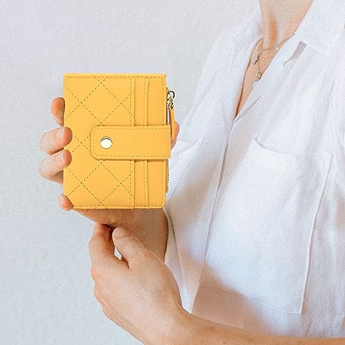 LJCZKA Small Wallet for Women Girls Bifold Zipper Card Holder Wallet Leather Pocket Mini Short Purse with ID Window (Yellow) 6