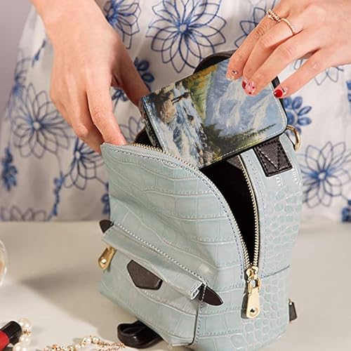 Floral Wallet Women Small Cute Card Holder RFID Blocking Vintage Mountain River Coin Change Purse with Zipper 7