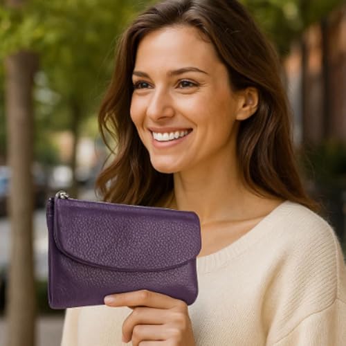 • 【Ultra-Slim Yet Spacious】: Measuring just 5.3×3.9 in,this compact wallet fits 6 cards,ID,cash,keys & even a mirror—without adding bulk.Sleek enough to slip in any pocket or clutch