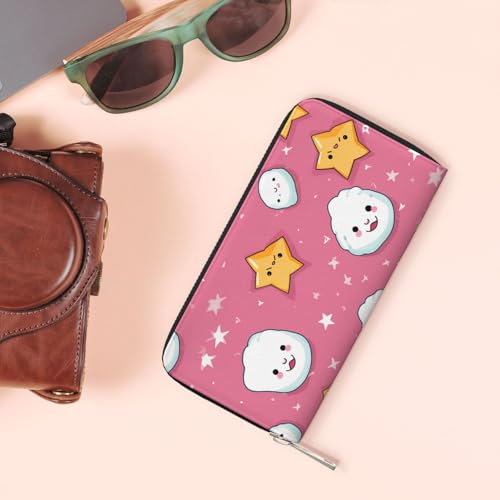 HOT ! Cute Rice Balls And Stars Pattern Leather Wallet For Women Girl, Zip Around Credit Card Holder Long Pu Wallet Clutch Purse Waterproof Travel Handbag