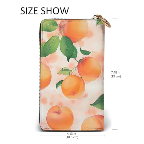 Peach Printed Long Wallet for Women Men Cute PU Leather Wallet with Coin Purse and Credit Card Holder 5