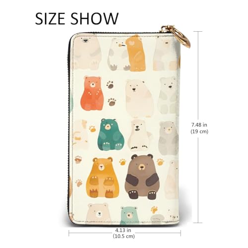 HOT ! White Bear Brown Bear Prints Leather Long Clutch Wallet for Fashionable Girls and Women - Durable, Stylish, and Functional, Black, One Size