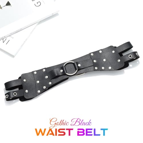 More information about BODIY Black Leather Wide Waist Belts Fashion Leather Belt Punk Waist Chain Belts Pu Body Accessories for Women