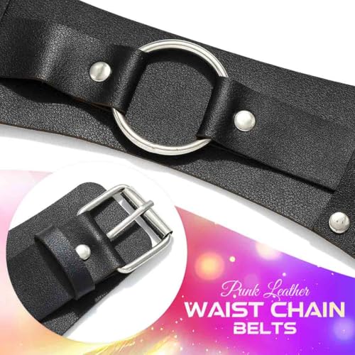 BODIY Black Leather Wide Waist Belts Fashion Leather Belt Punk Waist Chain Belts Pu Body Accessories for Women 4