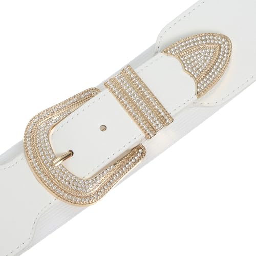 • 【Superior Material】-This elegant belt for women is made of leather,alloy,rhinestones and elastic fabric. Rhinestones on the belt is sparkle and shinny in daily wearing,making you more elegant and radiant in the crowd.