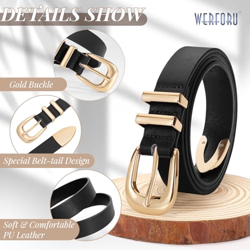 More information about WERFORU 2 Pack Women Leather Belt Fashion Leather Waist Belt for Pants Jean Ladies Western Belt with Gold/Silver Buckle,Fit Waist Size 37-41 Inches,A-black+brown