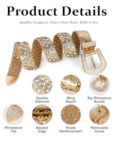 • ✨ Wonderful Gift✨-- This cowgirl belt comes with a fancy gift box, ideal gift to people you care of on Christmas, Thanksgiving, Valentine's Day, Father's Day, Mother's Day, anniversaries and birthdays. The cute diamond bb belt would be a big surprise to anyone as a gift.