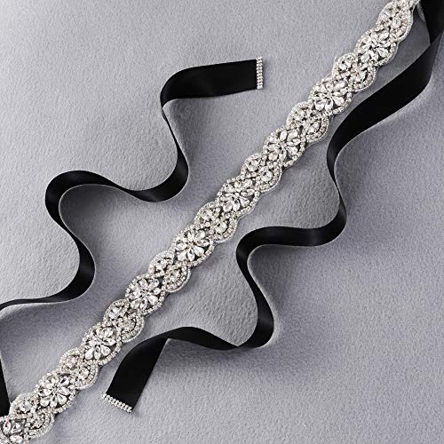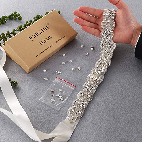 yanstar Handmade Wedding Belt Bridal Belts and Sashes Crystal Rhinestone Ribbon Belt for Wedding Dress Bridesmaid Prom Gowns 6