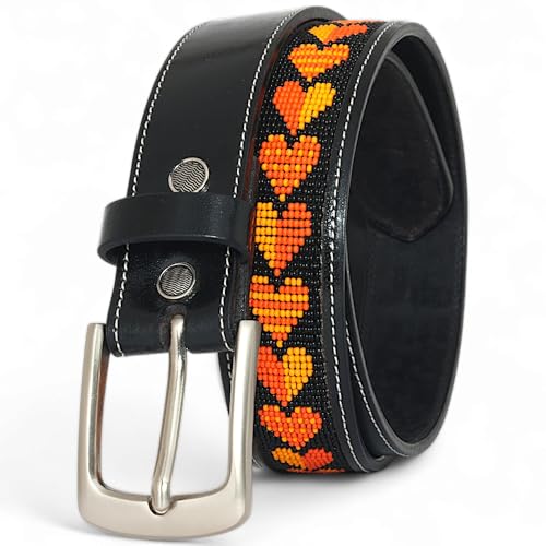 • Vibrant Heart Beadwork: Featuring stunning heart-shaped beadwork in vibrant colors like orange, red, white, and more, this belt is a beautiful expression of art and personal style.
