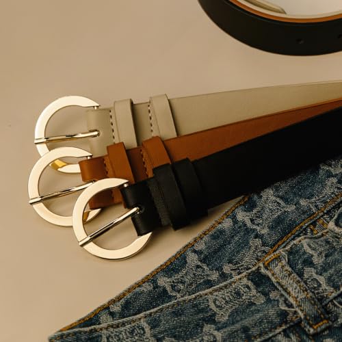 • The shiny gold alloy round buckle adds a touch of elegance to this classic fashion belt, making it a perfect match for any outfit such as jeans, slacks, dresses, jackets or cardigans.