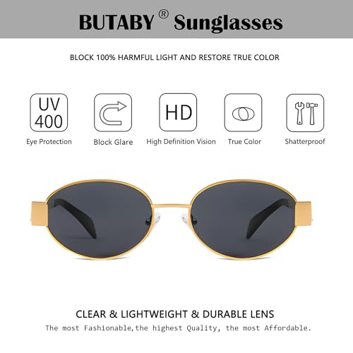 HOT ! BUTABY Retro Oval Sunglasses for Women Men Designer Trendy Sun Glasses Classic Shades UV400 Protection