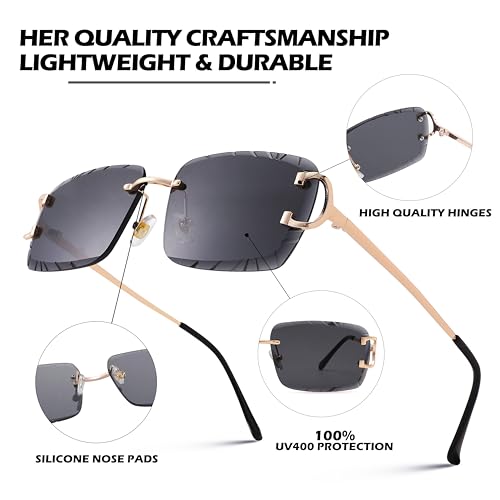 Rimless Rectangle Sunglasses for Men/Women- Frameless Square Trendy Shade - Diamond Cutting Eyewear 5