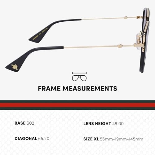 • Precision Fit and Comfort: The Gucci GG 0606SK sunglasses feature a lens width of 56mm, a bridge of 19mm, a temple length of 145mm, a lens height of 49mm, and a diagonal measurement of 65.20mm, ensuring a perfect fit and maximum comfort for any wearer.