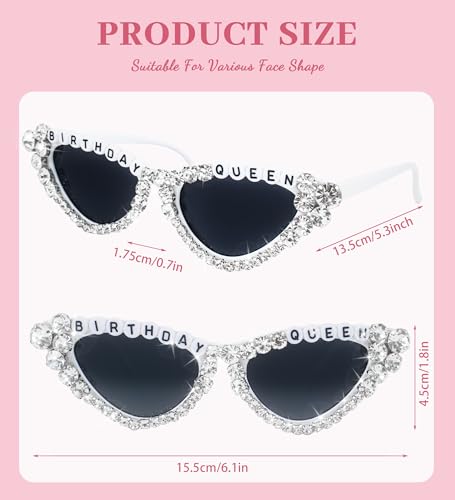 JUSTOTRY Birthday Glasses for Women Birthday Queen Sunglasses Birthday Party Gift Stylish Shiny Diamond Pearl 6
