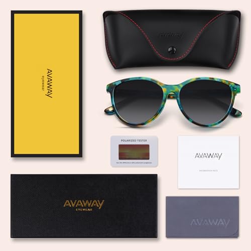 • 【CLASSIC ROUND FRAME FOR EVERYONE】AVAWAY Trendy round sunglasses bring new styles. Acetate brown tortoise frame combined with classic gray lenses, keeps your eyes comfortable in the sun, and simultaneously allow some light through so you can read your dashboard while driving. AVAWAY Category 3 polarized sunnies are suitable for both women and men and suits most face shapes, so almost everyone can rock this effortless fashion accessory.