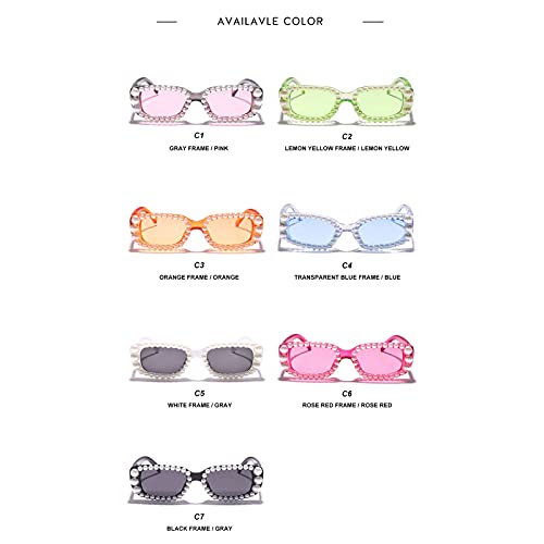 More information about willochra Pearl Rectangular Candy colors Sunglasses Vintage Retro Diamond Narrow Square Rhinestone Party Sun Glasses UV400
