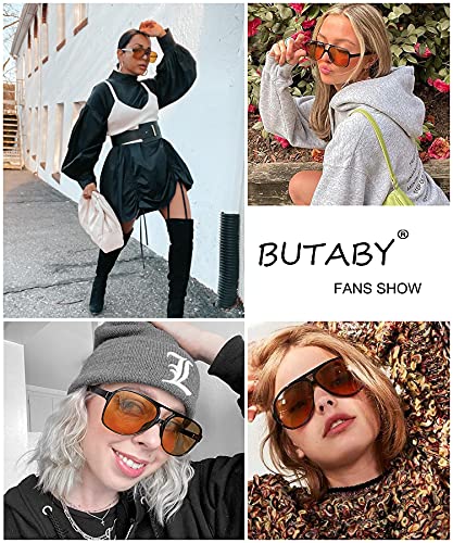 HOT ! BUTABY Vintage Aviator Sunglasses for Women Men Retro 70s Glasses Classic Large Squared Frame UV400 Protection