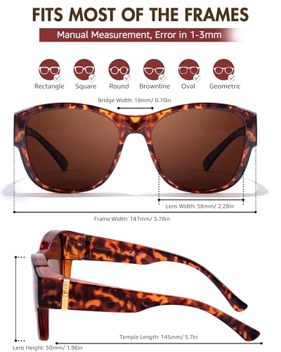 • WRAPAROUND STYLE: Designed to provide optimal coverage and protection for your eyes. These sunglasses feature a unique design that wraps around your existing eyewear, ensuring a secure and comfortable fit. The wide temples and large frames effectively shield your eyes from harmful UV rays, glare, and other environmental elements. With their sleek and stylish design, these wraparound fit over sunglasses not only enhance your vision but also elevate your overall look.