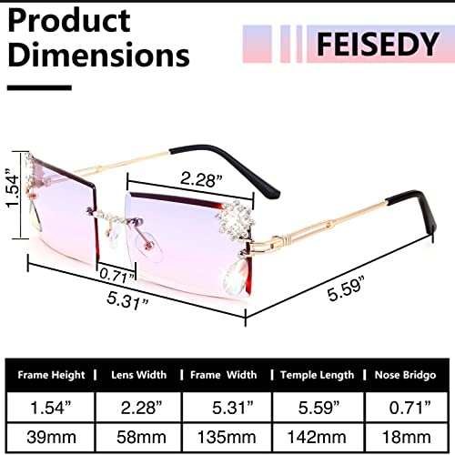 HOT ! FEISEDY Vintage Rimless Diamond Sunglasses 90s Small Rectangle Bling Frameless Y2K Candy Color Glasses B2333