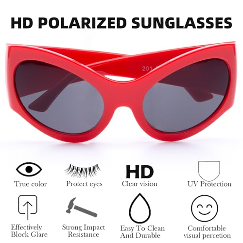 • 【Comfortable Wearing】: Injection frame is lightweight and shiny finish PC material. One-piece nose pads provide extra comfort by preventing pressure on sensitive areas like the bridge of the nose. The shades don't slip off when you wear them. If you're looking for a big,Y2K,unique,retro-style pair, ICARA sunglasses are the way to go.