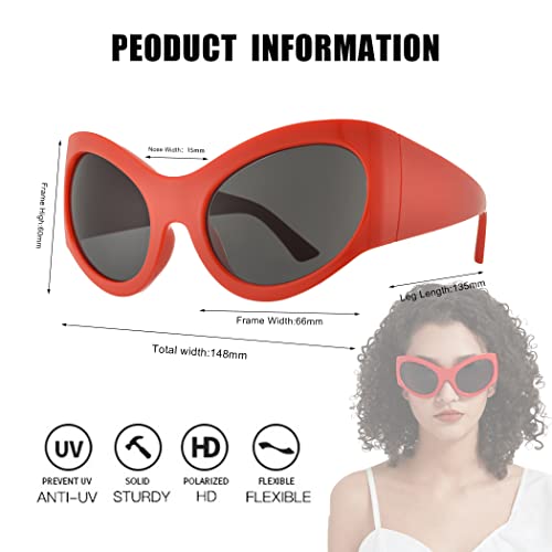 • 【Wrap Around Vibe and Vintage Design】: Flexible curved oversized oval frame offers more unique Wrap Around Feel. Flattering lines and aesthetically pleasing appearance. These oval sunglasses are imbued with a vintage inspired feel, Reimagined with a futuristic approach.