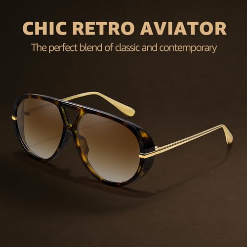 HOT ! TJUTR Oversized Aviator Sunglasses for Women & Men, Retro Luxury Designer Sunglasses Big Shield Shades with UV Protection