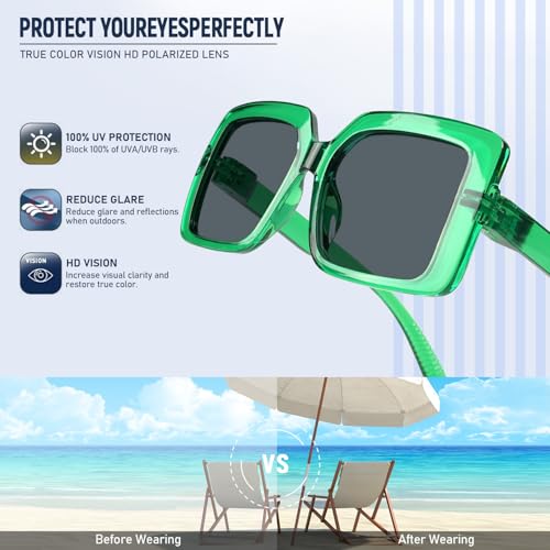 • [ Durable ] - Our Polarized Sunglasses with new screwless design allow you to open the hinges super wide and snap them back with ease, eliminating worries about screws falling out or temples becoming loose.