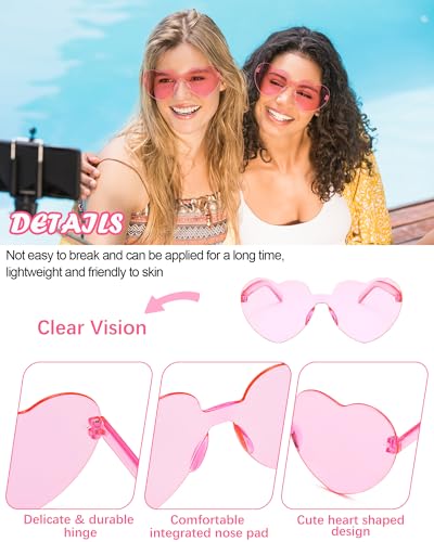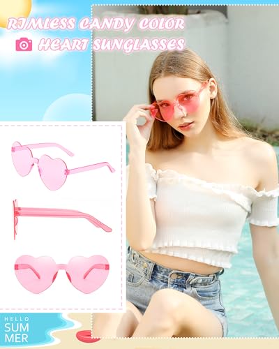 14/18 Pairs Heart Shaped Sunglasses Candy Color Rimless Fun Heart Glasses for Women Party Favors 4
