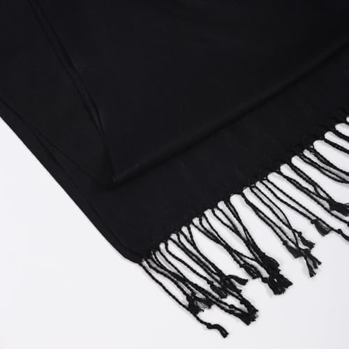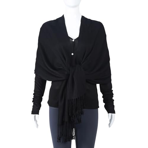 • FASHION AND CLASSIC DESIGN: Solid color shawl wraps for women dressy are beautiful and classic. It draped gracefully and the tassel fringe adds a chic touch. Whether for casual or formal wear, this pashmina feel wrap will get lots of compliments and never goes out of style.