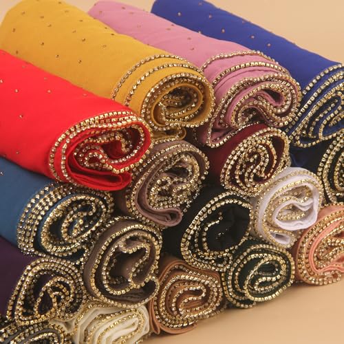 Luxury Hijab Scarf For Muslim Women, Fashion Premium Chiffon With Rhinestone Head Wrap Shawl Scarves 6