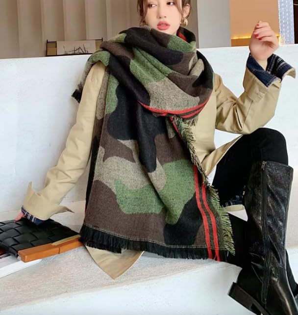 More information about Secret for Longevity Oversize Unisex Heavy Weight Wool Feeling Brown Black Army Green Beige Camouflage Red Trim Poncho Cape Travel Blanket Winter Shawl Scarf 33" Wide x 72" Long