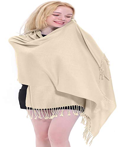 CJ Apparel Champagne Nude Solid Color Tassels Design Nepalese Shawl Seconds Scarf Wrap Stole Throw Head Wrap Pashmina Hand Made in Nepal New 2