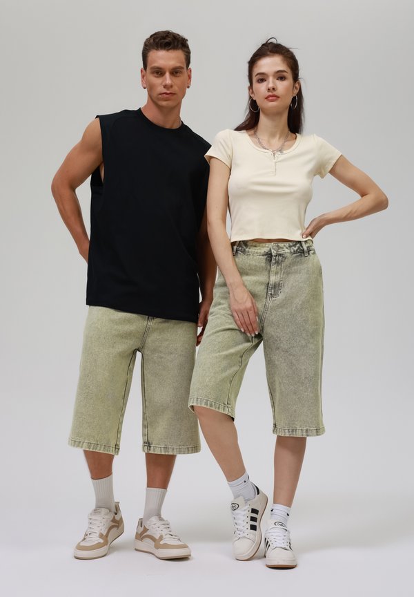 HOT ! UNISEX - Denim shorts - light olive