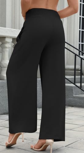 Womens Wide Leg Pants Palazzo Casual Flowy Elastic Waist Pant Dressy Long Lounge with Pockets 4