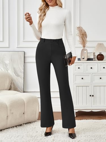 LILLUSORY Womens Stretchy High Waisted Dress Pants Business Casual Flare Slacks Office Work Pull On Trousers with Pockets 1