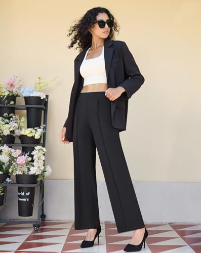 Women's High Waist Dress Pants Side Pockets Wide Leg Work Trousers Elastic Stretchy Casual Slacks 6