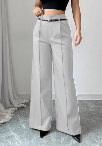 HOT ! Women's Wide Leg Pants High Waisted Dressy Business Pants Straight Leg Casual Trousers with Pockets