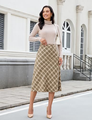 HOT ! luvamia Plaid Skirts for Women Midi Length High Waisted Trendy A Line Elastic Waist Casual Office Work Fall Skirt