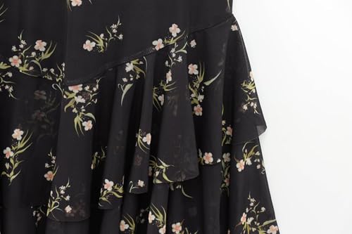 French Retro Floral Printed Ruffle Edge Chiffon Skirts for Summer High Waisted Vacation Midi Skirts Womens 4