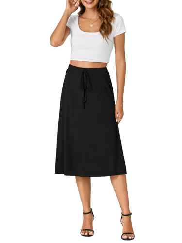• High rise style, drawstring self tie waist, flared hem, A line midi skirt is made of soft and breathable modal fabric, lightweight and skin friendly to wear, greatly increase the comfortable and breezy wearing experience.