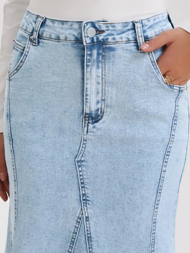Womens Fishtail Long Jean Skirt High Waisted Casual Stretchy Fit and Flare Midi Denim Skirts 4