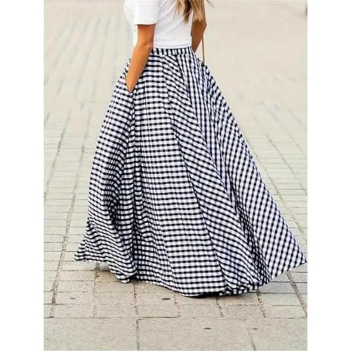Women Plus Size Plaid Skirt High Waist Wide Leg Long Skirt Elegant Summer Skirt 5
