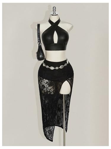More information about Verdusa Women's Plus Size Lace Skirt High Waisted Split Bodycon Midi Skirts